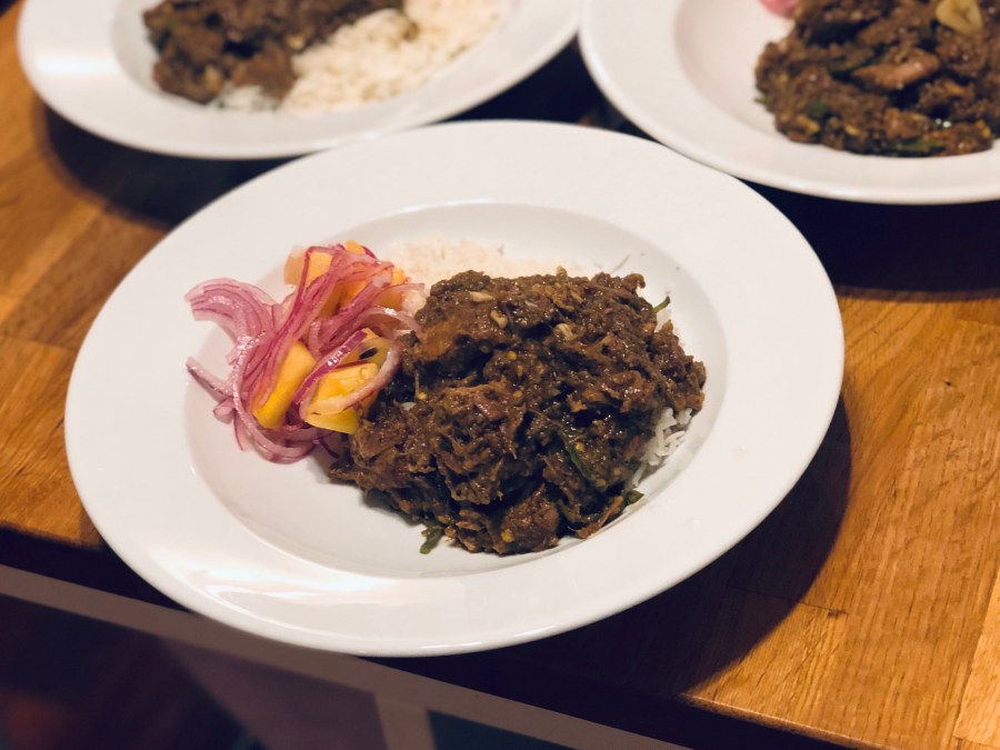 Last night we cooked this wonderful Rick Stein curry. Pork shoulder cooked down for a few hours, a salad of pineapple and red onion to cut through the richness and a pilau rice at the side.