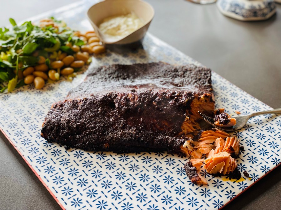 This recipe is so clean and honest, with the simple salad dressed with only olive oil and lemon juice, cutting against the sweetness of the ocean trout rub.