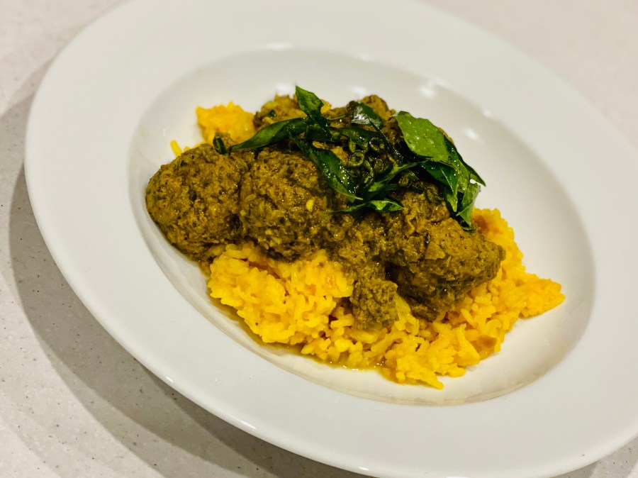 - Before serving, ensure the mini kofta and sauce are hot. Spoon the rice out onto a large serving plater, making a well in the centre. Embed the mini kofta into the rice, drizzling some of the sauce over the rice as well. Garnish with chilli slices.