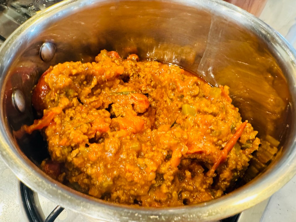A dinner that would not ordinarily be what we would dish, though someone was not feeling well and comfort food was in need.