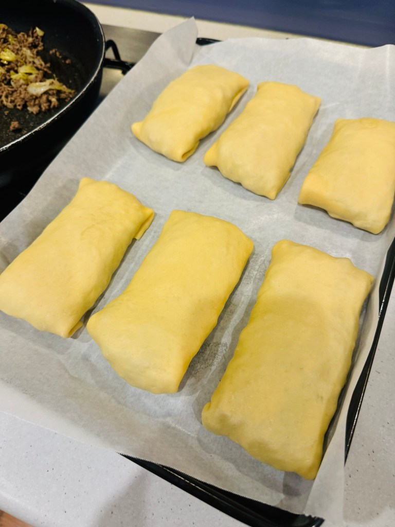 It’s a bit like a pizza pocket, though filled with savoury mince, maybe cheese, mushrooms, chilli, you name it.