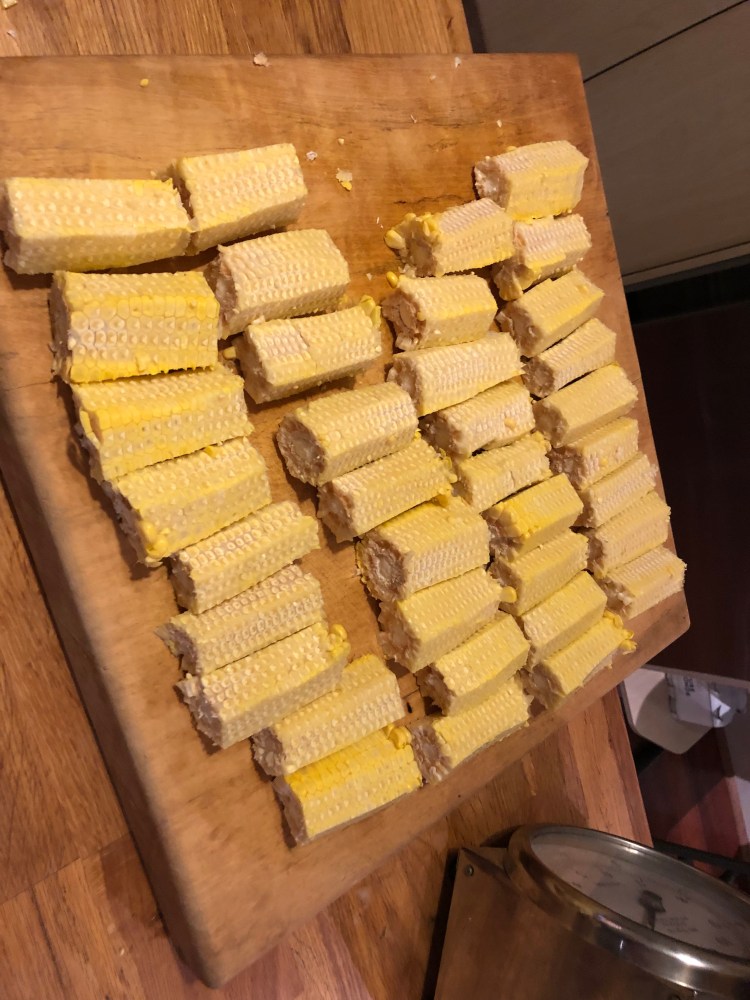 Hats off to Nat too: she sliced 16 kilos of onion, made 4 litres of corn stock, cubed 5 kilos of snapper, cured a salmon and reduced 10 litres of cream and fish stock two, one and zero days to the d-day. (These are qualities anyone should look for in a wife!)